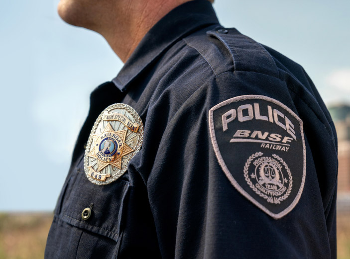 BNSF is committed to keeping our customers’ shipments safe and secure, from pickup to delivery. We employ our own fully certified state law enforcement officers who carry full police and arrest powers. BNSF Police conduct proactive, uniformed patrol to protect against trespassing and cargo theft across the network. We work collaboratively with state and local authorities, customers and citizens to address security threats, enhance preparedness and advocate for legislation that protects the supply chain.