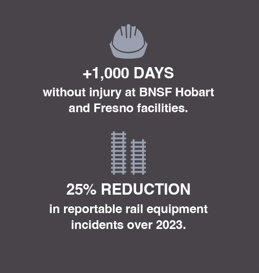 In terms of safety performance, 2024 was our second-best year, following only 2023’s record low injury frequency rate. We achieved a solid reduction in reportable rail equipment incidents, which were down approximately 25 percent from 2023. Two high-volume California operations — our Hobart Intermodal facility and our Fresno terminal — have both achieved injury-free safety streaks of more than 1,000 days.