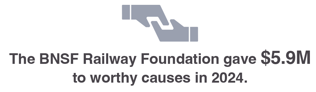 Every year, our generous team members, at locations across our network, volunteer and contribute their time and talents to numerous charitable causes in their communities. The BNSF Railway Foundation’s Employee Matching Gift Program matches employees’ financial donations to public charities dollar for dollar up to $20,000 per employee per year. The Foundation matches about $1 million annually to more than 700 organizations.