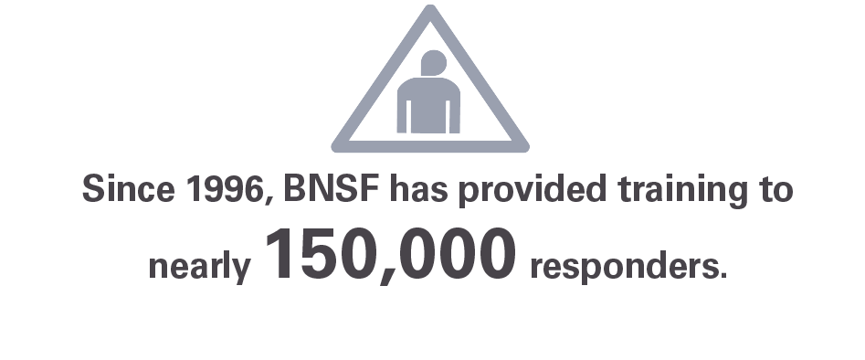 BNSF successfully transports hazardous materials safely – 99.99% of BNSF hazmat shipments reach their destination without a release caused by a train incident. Our rigorous approach to hazmat safety is informed by a framework of measures focused on prevention, mitigation and response. Resources include a network of 180+ responders and advisors trained to deal with all types of hazmat releases and emergency response equipment strategically positioned at 60+ locations across our network.