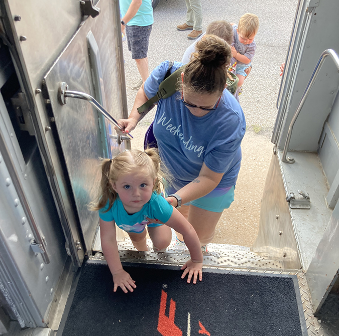 Some of the participating employees don’t have regular opportunities to ride a train. Amber White, in Accounts Receivable, hopped aboard the EAS for the first time during its trip through Topeka, Kansas. Amber and her family were all smiles during the ride.