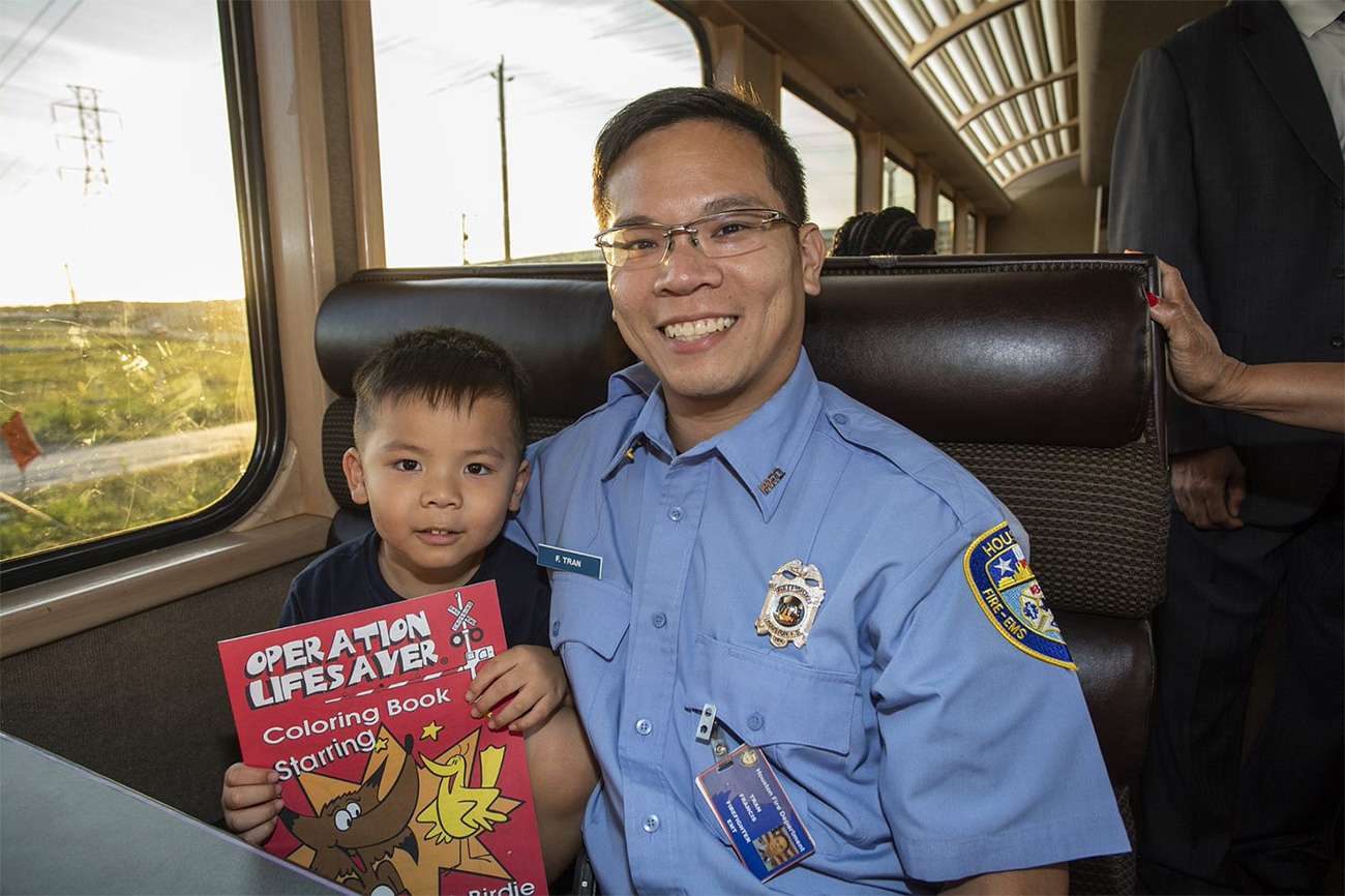 The First Responder Express, which BNSF began in 2015, made a recent stop in Houston and welcomed police officers, firefighters, paramedics and their families to board restored vintage railcars for a tour along our network.