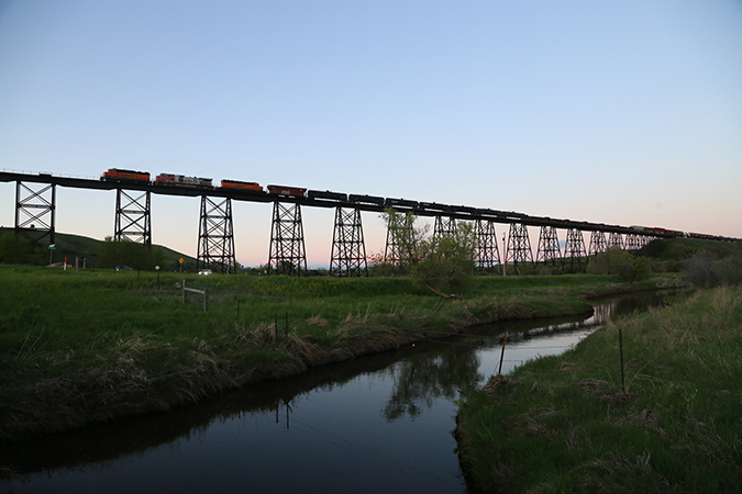 “I caught this local BNSF train as it passed over the Gassman Coulee Trestle, just under 1,800 feet long.”