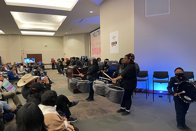To rouse a couple hundred groggy teenagers on a Saturday morning, try cymbal clanging, snare drum tapping and bass drum pounding – from inside a conference room. Thanks to a Fort Worth, Texas, high school’s drumline percussions, energy was high at the kickoff for BNSF’s 24th Technology Awareness Day (TAD).