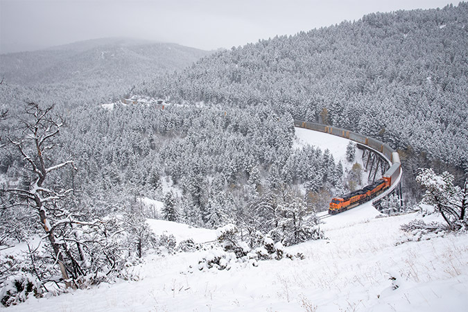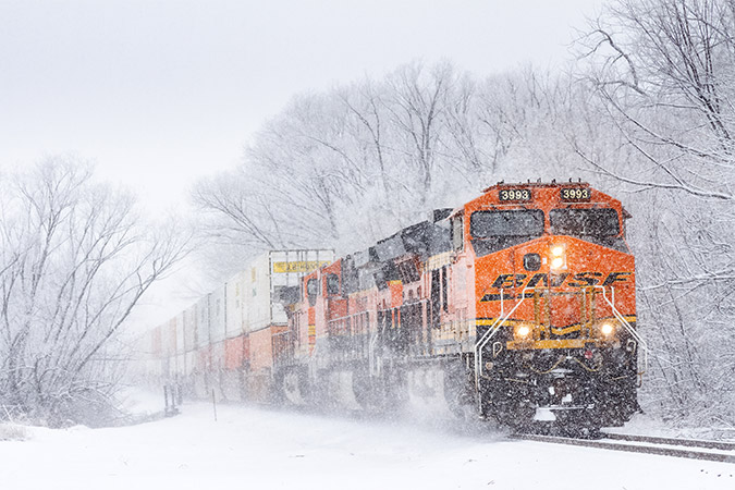 In the midst of the many challenges people have faced in the past several months, it’s good to see that some things never change. BNSF trains keep moving freight, and railfans keep capturing magnificent images of them, even in cold winter weather. We’ve scoured the entries from this year’s Winter Photo Contest to find the 10 most un-brrr-lievable scenes!