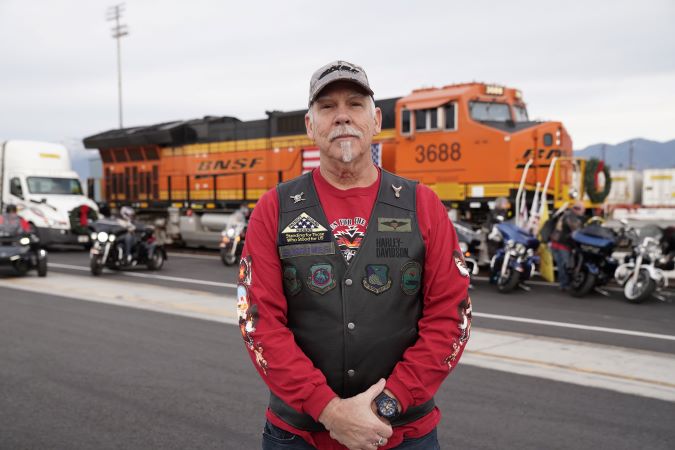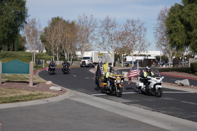 The Patriot Guard, volunteers who share a love of motorcycles and respect for fallen heroes, escorted the truck from the yard to the nearby Riverside National Cemetery. Among the escort riders was locomotive engineer James Burrowes. “I’m a veteran and it just gave me a great sense of pride and filled my heart to be a part of this,” he said.
