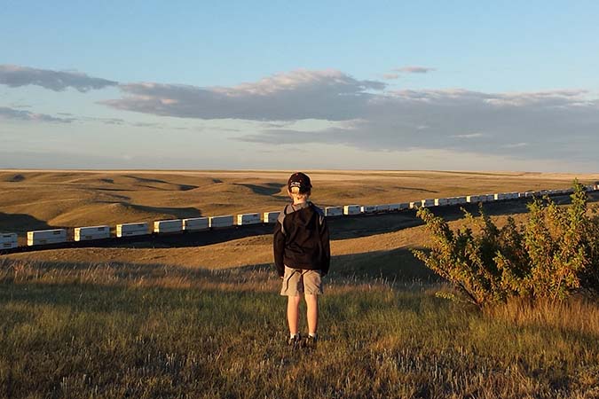 Jackson’s Mom: The top photos shows my son, Jackson Jonas, near the Hi-Line East of Shelby, Montana. This photo was taken on the day that his Grandpa had to move out of my childhood home. I had that view for 15 or so years and I never really appreciated it back then. Many late curfews from a train blocking the highway home and horns going at all hours. Now my son would have loved to have lived there to get to see and hear trains 24-7. And me, just hearing a train horn now brings me back to my childhood, to that spot, the Sweetgrass Hills, the smell of sagebrush on a hot day with grasshoppers buzzing by. Jackson would stand out there for hours watching trains come and go. He'd be excited to go see his Grandparents, not only for them, but he knew he'd get to watch trains all day. He's 15 now but has not stopped loving trains. He's a true railfan for life and still plans on making it a career.