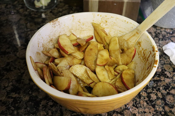 Once I had sliced the apples, I combined them with the sugar, molasses and spices. They smelled amazing already! The recipe called for a medium mixing bowl, but I recommend using a large one if you try the recipe.
