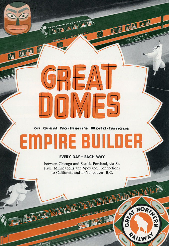 Always looking for new ways to promote the railroad, the goats in the park piqued the interest of GN Vice President William Kenney, who in 1921 had the inspiration to make the bewhiskered animal a railroad emblem. “Rocky” the goat was born, though only in image; his name would come later. (He’s actually not a goat, but a member of the antelope family.)