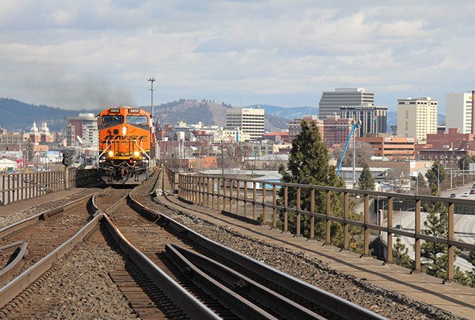 As the largest city on BNSF’s northern transcontinental rail line between Seattle and the Twin Cities, Spokane is an integral part of the BNSF network. Throughout the history of the town and of railroading in the Pacific Northwest, Spokane has served as a vitally important center for BNSF predecessor railroads and continues that legacy today.