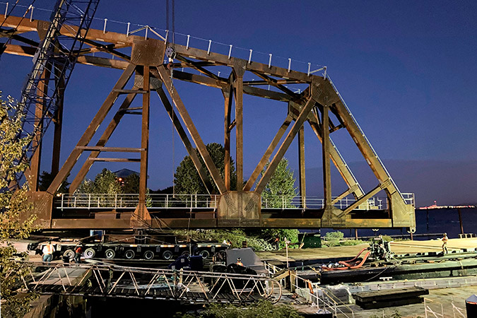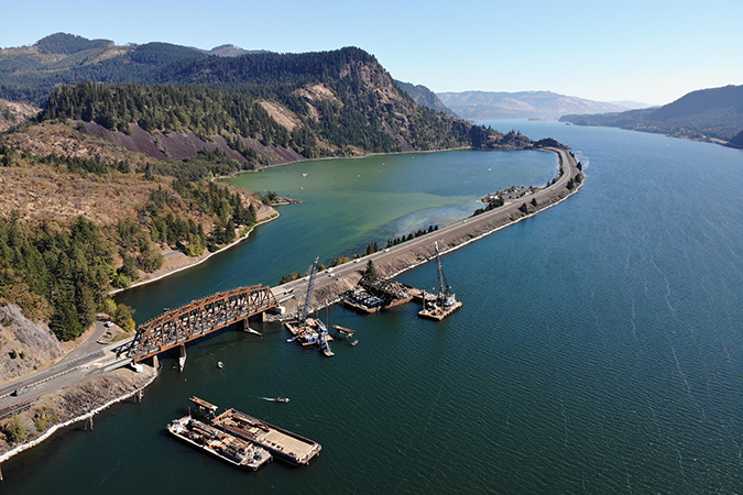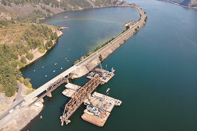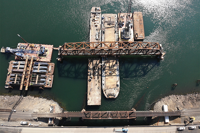 “With crane and barge operations involved, we had to make sure Mother Nature cooperated. Some days she did, some she didn’t,” said Mike Herzog, director, Bridge Construction. Smoke from nearby wildfires also added to the project’s challenges.