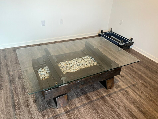Because of his devotion to railroading, Molina commissioned a custom coffee table using vintage railroad materials.