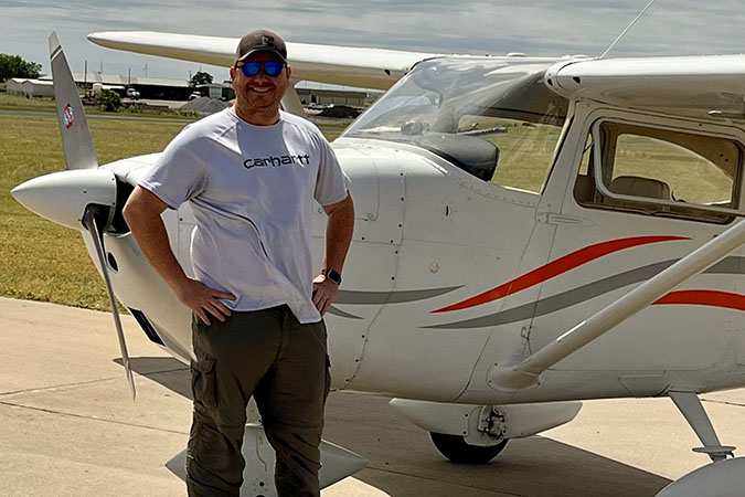“I was sitting on the couch and decided it was time to learn how to fly a plane,” he recalled. “So, I took the Private Pilot Knowledge exam and then found a flight instructor who now happens to be a good friend.”