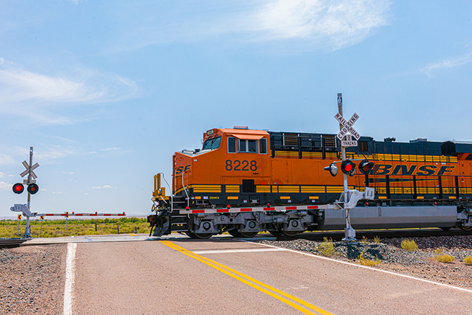Engineering crossings with traffic control signs, like crossbucks, pavement markings and flashing lights and gates are also safety measures that are used to warn the motoring public. BNSF participates with the Federal Railroad Administration (FRA) in reviewing communities’ crossing projects to encourage the implementation of these safety devices. These, together with the sounding of a train horn by the locomotive engineer, warn motorists that a train is approaching.