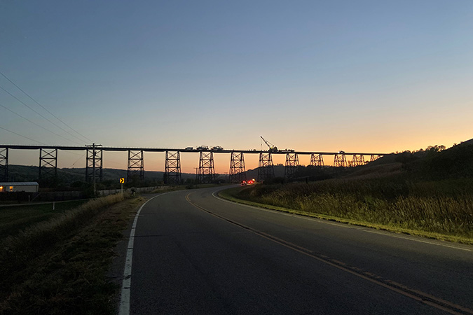 The crews rose to the challenge and safely built the new deck that’s nearly 120-feet in the air (like standing on top of a 12-story building). Just as important, they completed it ahead of the peak of harvest season on a line that is a major thoroughfare for grain moving to West Coast ports.