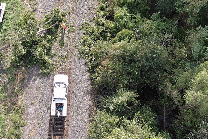 Once the storm has passed and waters have receded, between UAS and inspection teams on the ground, we cover each mile of the affected railroad, in this case about 130 miles. Looking for track washouts, structure damage and signal and crossing outages, every section of railroad must be checked. Clean-up crews follow with excavators, chainsaws and grapple trucks.