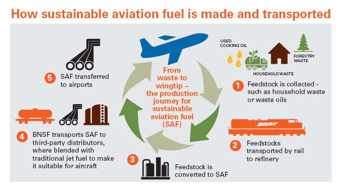 Recently, BNSF joined forces with Calumet/Montana Renewables to ship the producer’s SAF to market.