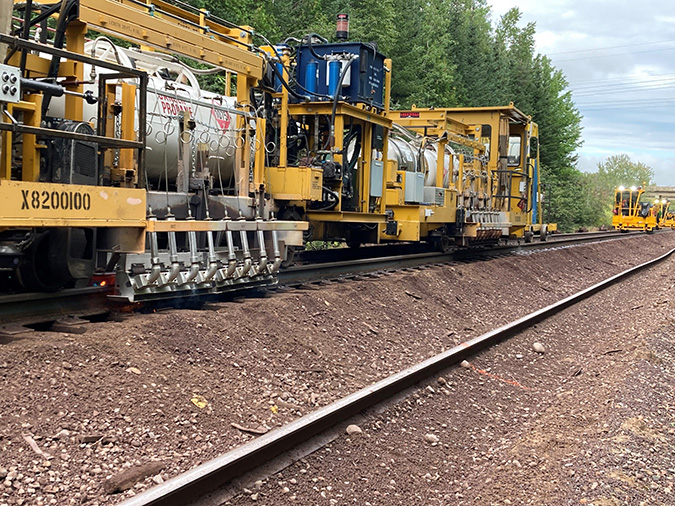 Zerr’s team completed the work in 14 days, four fewer than planned, installing 63,000 feet of new 115-pound welded rail.
