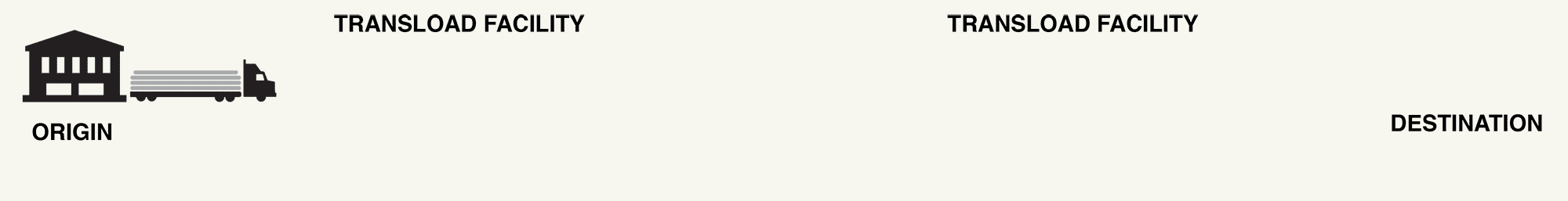 Shipment taken from its origin by truck to a transload facility